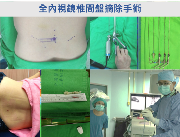 脊椎內視鏡椎間盤切除術:用最小傷口不破壞組織的方式,進入椎間盤病灶處,移除突出的椎間盤部分,減輕神經壓迫。
