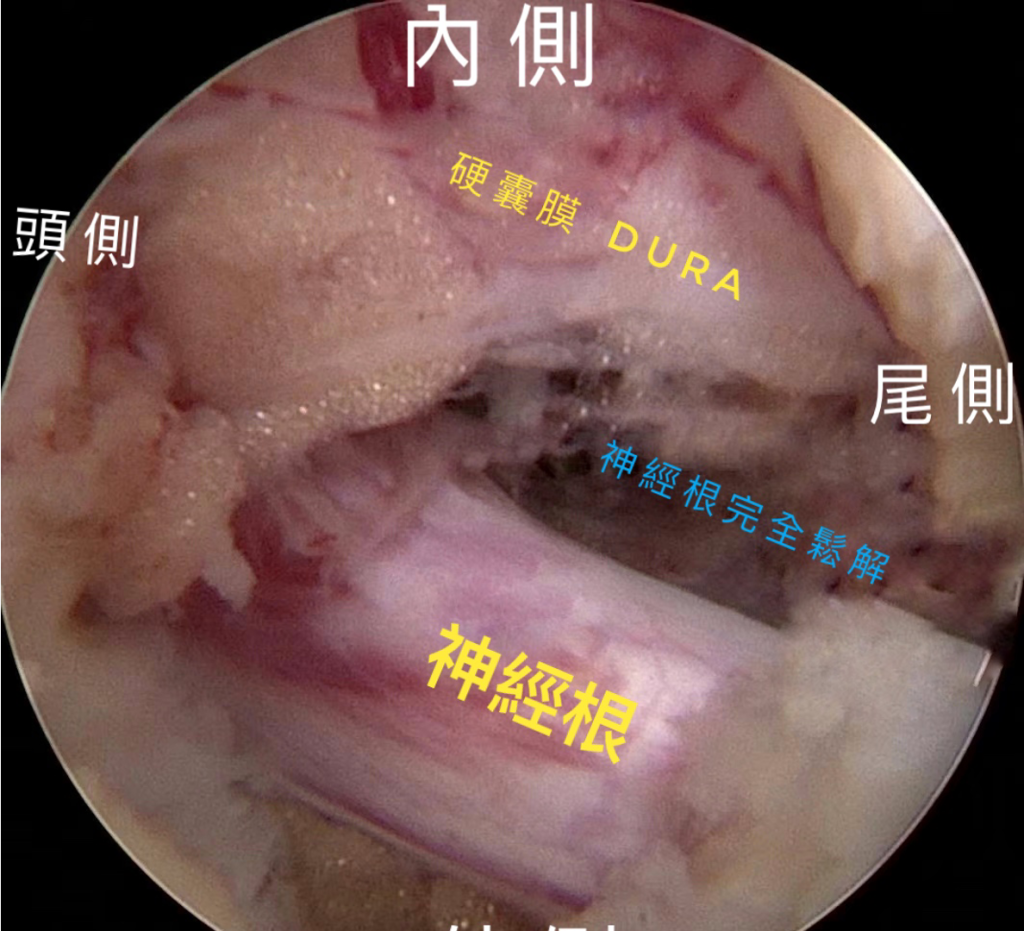 | 內視鏡微創減壓手術 | 利用內視鏡技術,在小傷口下清除壓迫的部分 | 清晰看到神經管,精準減壓、不破壞穩定性、恢復快、傷口小,通常不需放螺絲 | 技術要求高,熟習專業此技術的醫師最重要。專業熟習內視鏡技術的手術醫師可用有效安全並且有效率的時間完成手術。 |