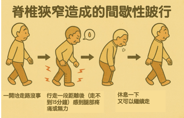 這種情況,我們叫做「神經性跛行」,是腰椎狹窄最典型的症狀。