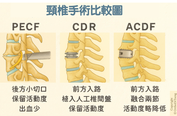 優勢:住院時間短(平均0.5天),保留頸椎活動度,適合單側椎間孔狹窄。